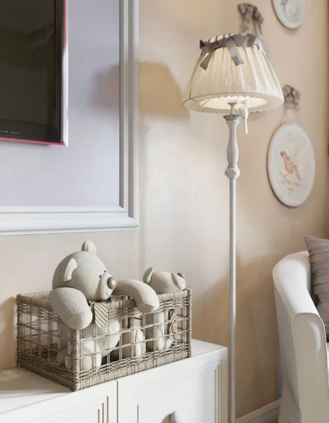 Детская комната — это место, где ребёнок играет, учится и отдыхает, поэтому здесь важно обеспечить хорошее освещение. Яркий уровень освещенности в 200 люкс способствует концентрации и продуктивному проведению времени. Используйте потолочные светильники для общего света и настольные лампы для рабочего стола.