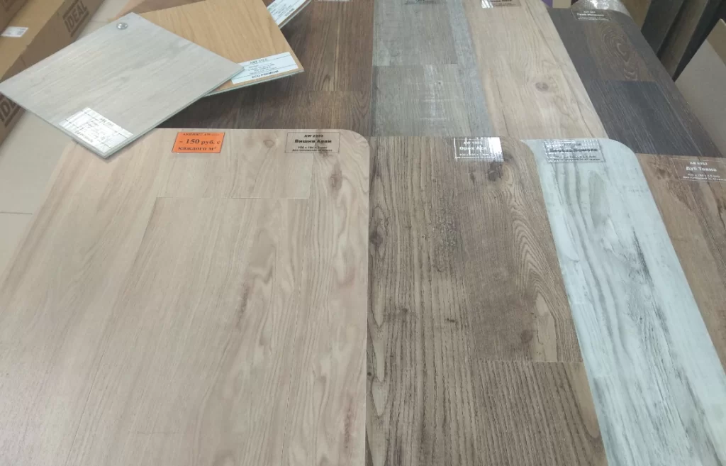 Натуральное дерево очень капризно переносит перепады влажности, тогда как плитка ПВХ не боится ни перепадов, ни затоплений, подходит для ванной комнаты. Линолеум не обладает столь же реалистичными декорами “под дерево”. Он лежит целым полотном, а не отдельными досками. Рисунок его штампованный, тогда как плитку из винила и кварц-винила выпускают с несколькими рисунками одного и того же артикула.