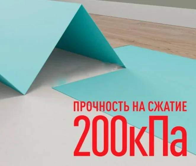 Выбирайте подложку с прочностью на сжатие не менее 200 кПа/м² (именно эту характеристику обычно указывают производители) и с плотностью от 100 кг/м3.