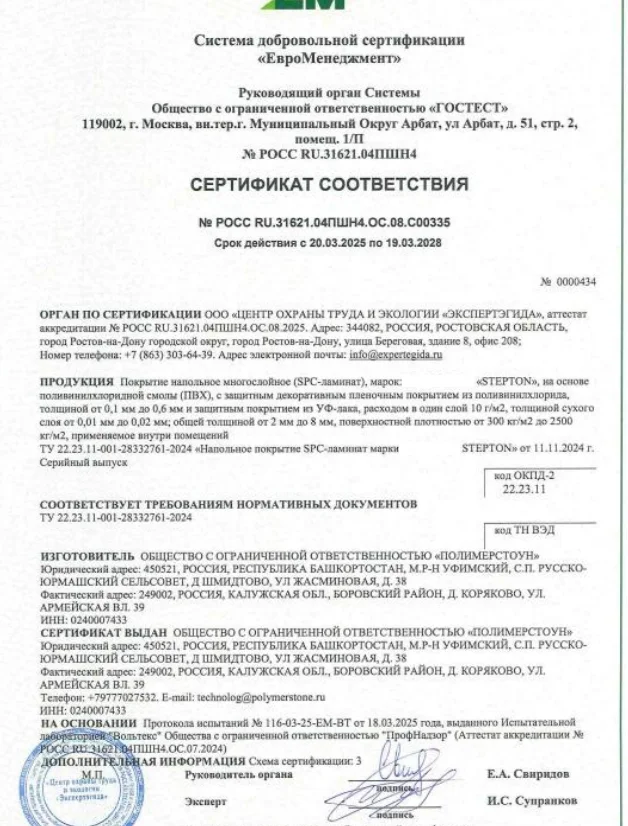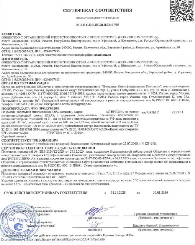 SPC ламинат действительно может быть долговечным и практичным покрытием, но только при условии соблюдения всех технологических норм при производстве, соблюдении правил монтажа и эксплуатации. Stepton - один из немногих брендов, чья продукция соответствует заявленным характеристикам и может служить годами без потери качества. Это отличный выбор для небольших бутиков, офисов, салонов красоты.