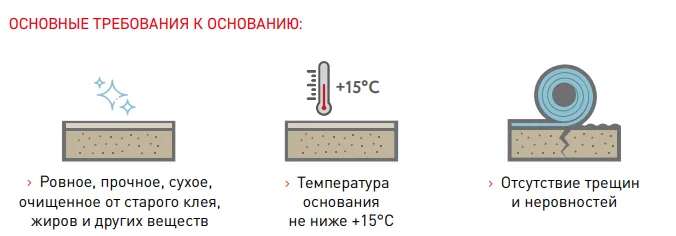 Также рекомендуется загрунтовать основание водно-дисперсионной грунтовкой, например, Homakoll 04С Prof. Работать с клеем необходимо при температуре основания не ниже 15°С.