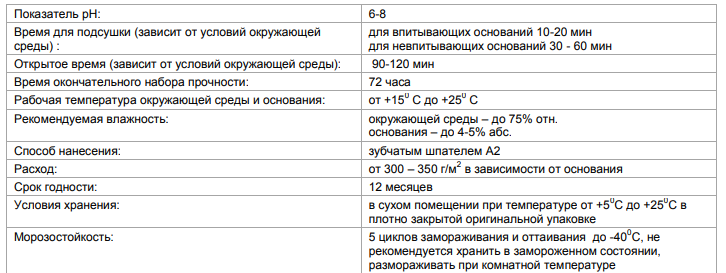 Расход клея 300-350 г/м², в зависимости от основания.