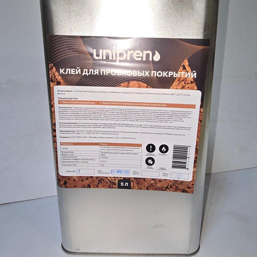 Контактный клей для пробковых покрытий Unipren 5 л