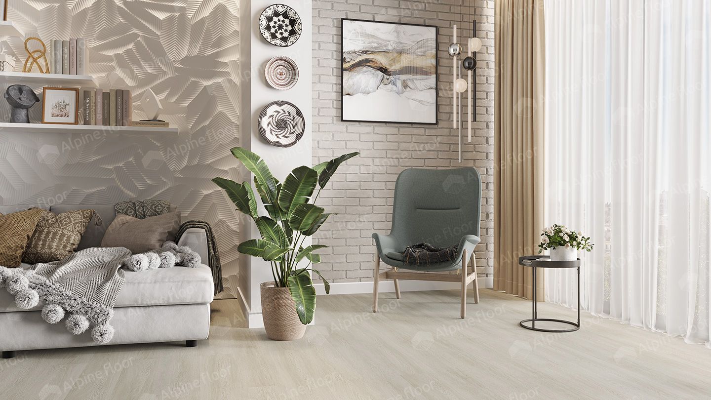 Каменно-полимерный ламинат SPC Alpine floor Solo выполнен на SPC основе. В составе 100% первичный винил и кальцит СаСО3.