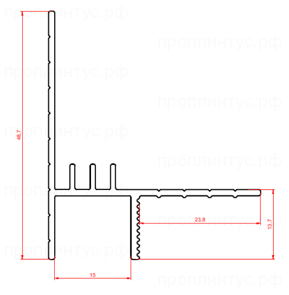 Плинтус теневой для потолка Декопрофиль 7284.05 алюминиевый анодированный, чёрный применяется для создания эффекта "парящего потолка" в помещениях, где строится потолочная конструкция из ГКЛ в один, или в два слоя укладки листов.