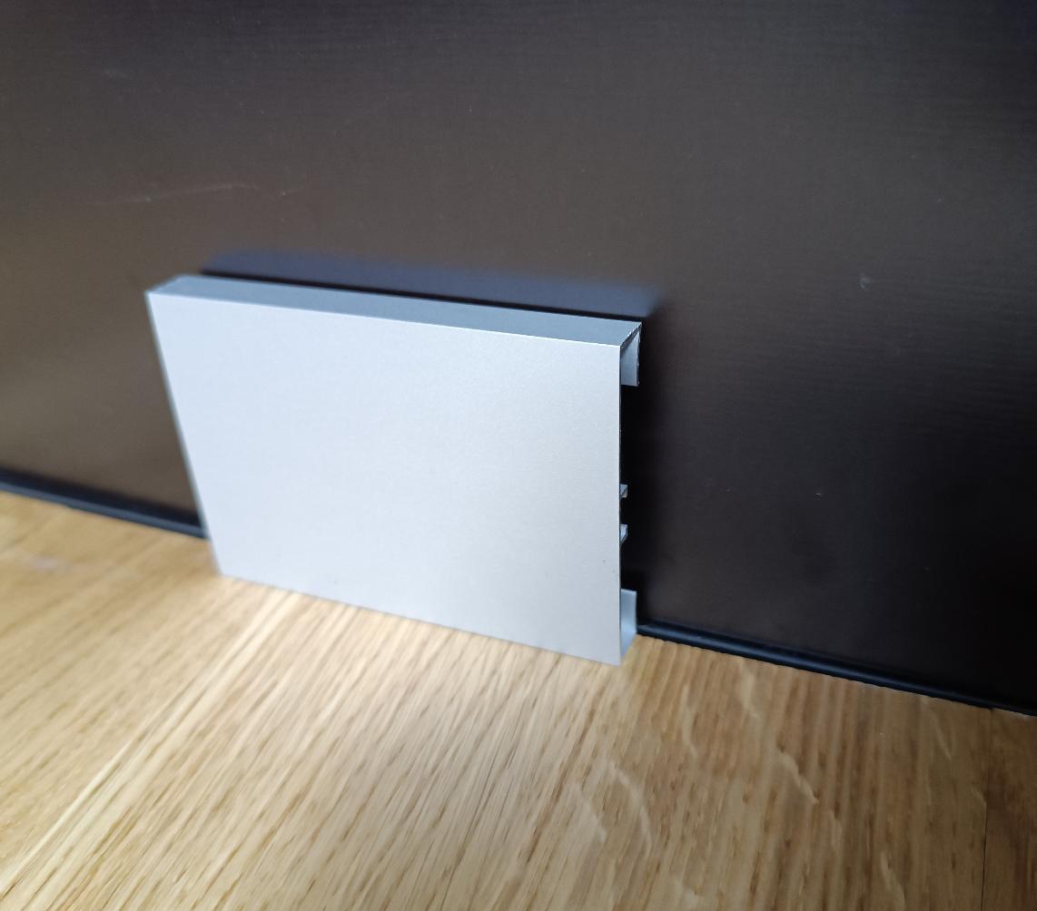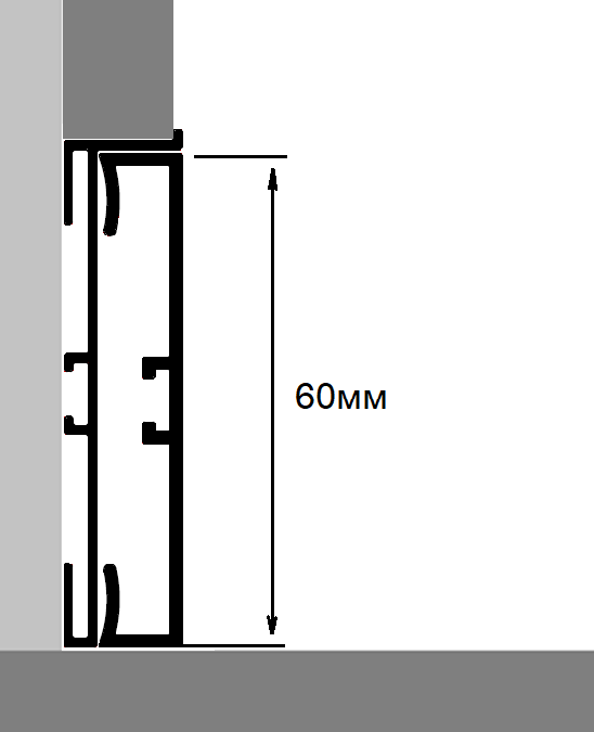 Алюминиевый плинтус BFM ProFile 40-6010 высотой 60 мм может использоваться самостоятельно или как вставка в скрытый плинтус BFM ProFile 30-6013 или другие. Идеальное решение для стилей лофт и хай-тек.