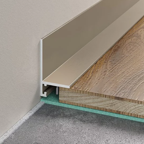 Микроплинтус угловой формы - современное решение для интерьера. Монтаж не требует специальных навыков и инструмента, выполняется после укладки напольного покрытия.