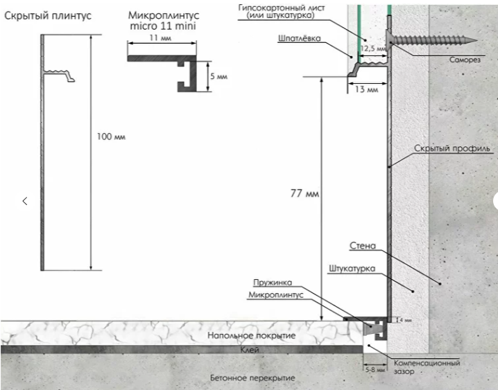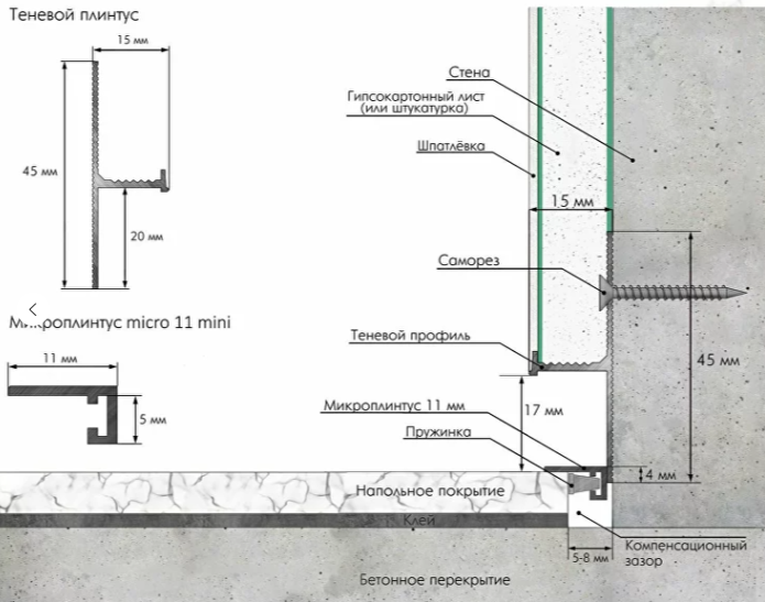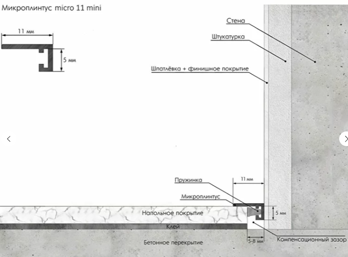Ширина 11 мм, что делает профиль незаметным, лаконично завершая отделку.