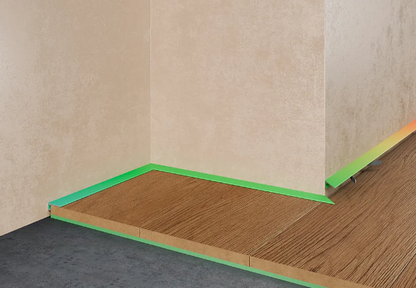 Микроплинтус легко прячет технологический зазор между напольным покрытием и стеной. Выручает, когда нужно оставить от стен до плавающего напольного покрытия широкие зазоры.