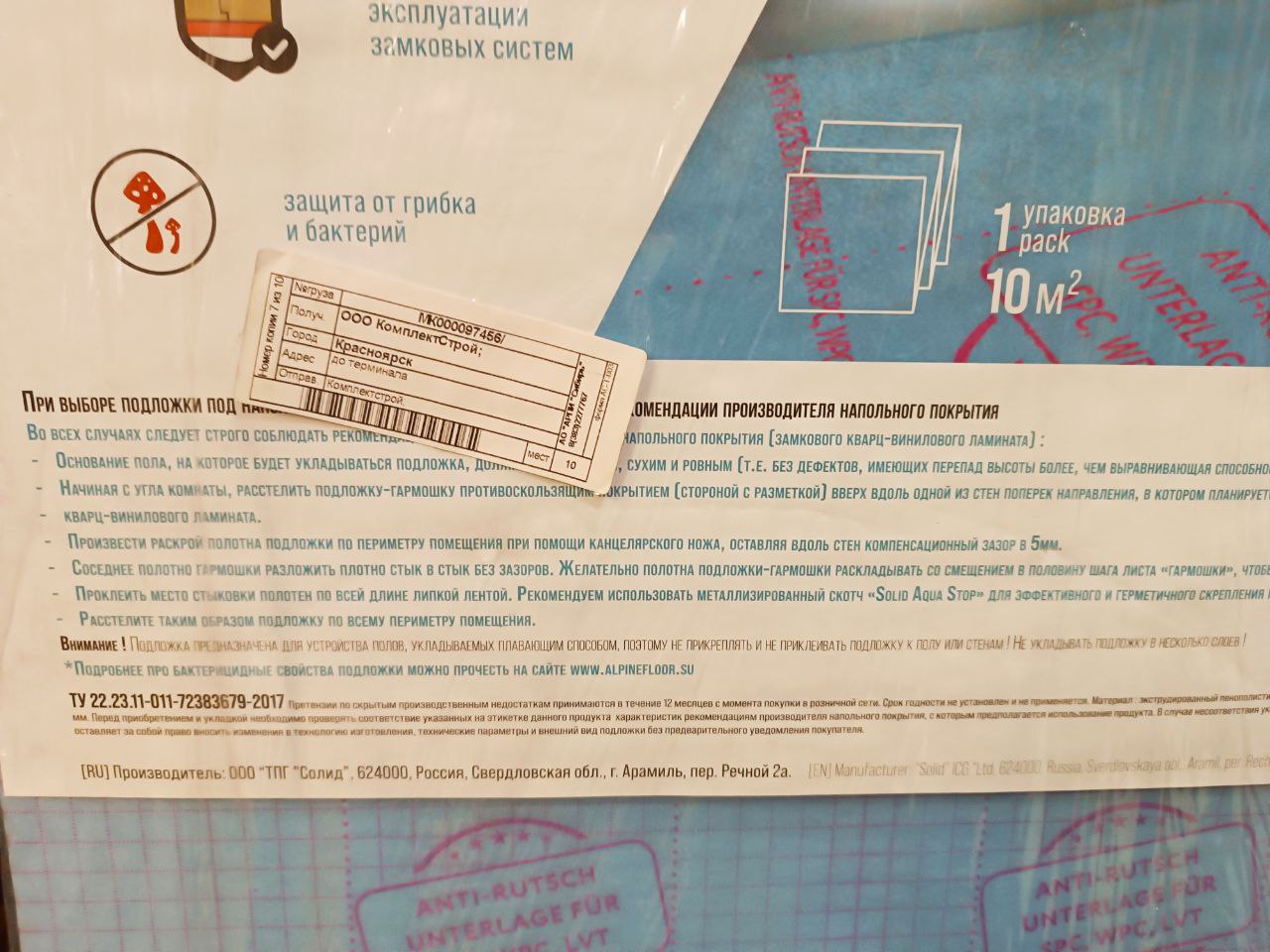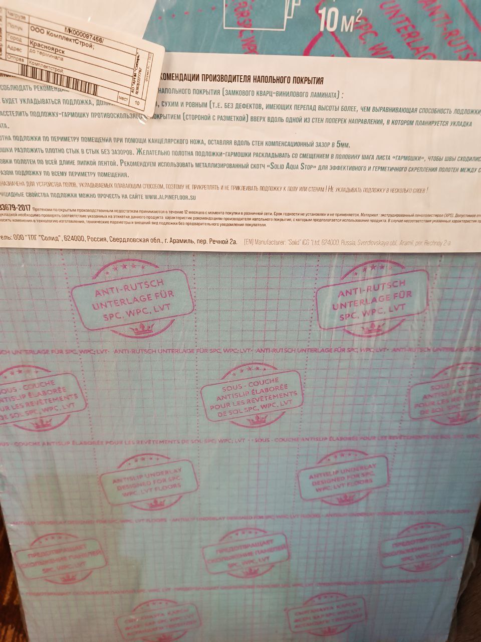 Подложка под кварцвинил Alpine Floor Vinyl AntiSlip листовая имеет толщину 1,5 мм.
