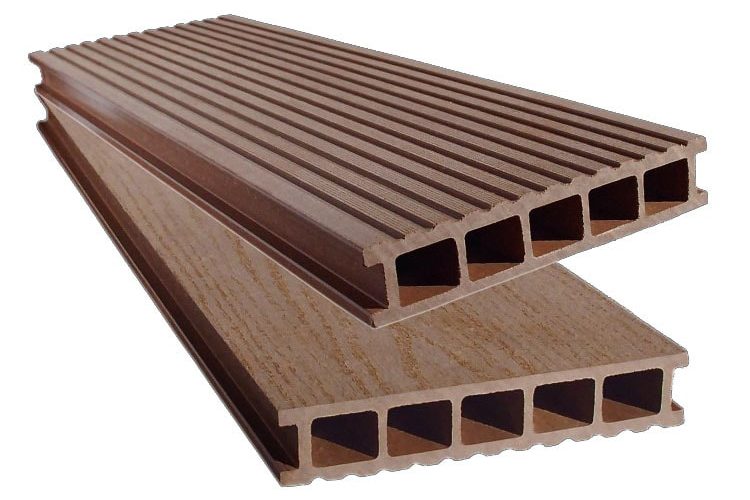 Террасная доска производится из первичного полимера низкого давления и древесной муки. Современные технологии позволяют ей быть влагостойкой, доска не гниет, не впитывает влагу, не выцветает, стабильна в размерах, прочна и надежна.
