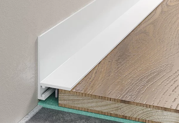 L плинтус же за счет вертикальной части удерживается в зазоре при любой нестабильности ламината.