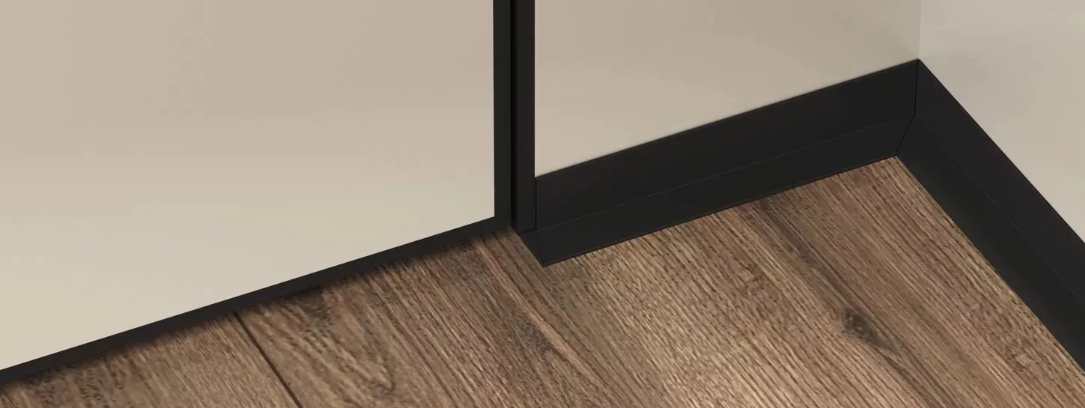 Микроплинтус для пола алюминиевый с пружинами черный матовая эмаль RAL 9005
