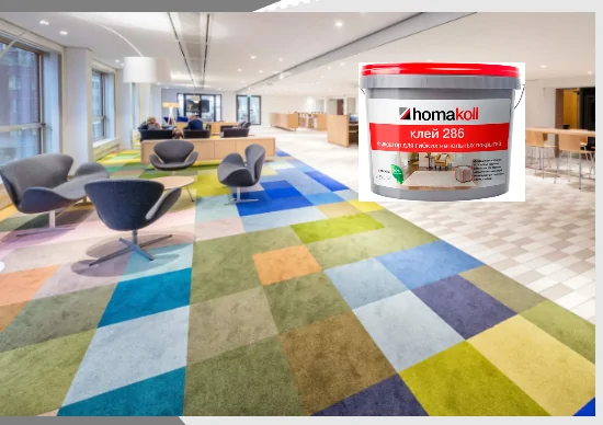 Любым клеящим составом необходимо пользоваться по инструкции. Homakoll 286 — не исключение. Этот клей подходит для приклеивания виниловых и ковровых плиток, ковролина и текстильных покрытий с различными основами, фиксации ковриков на поверхности керамогранита, линолеума и других напольных покрытий. Используется в т.ч. и тогда, когда в последствии необходим будет демонтаж фиксируемых материалов.