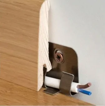 С обратной стороны плинтуса имеются специальные запилы, которые совместимы с клипсами Clipstar. Наиболее простым методом крепления является установка при помощи монтажных клипс, но монтаж на клей также допустим.